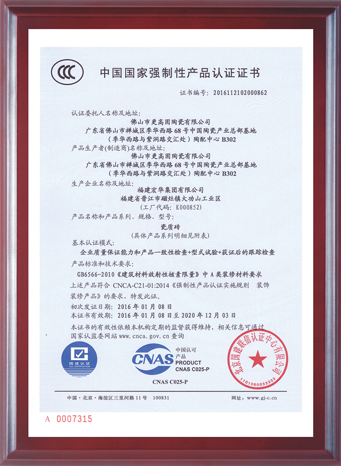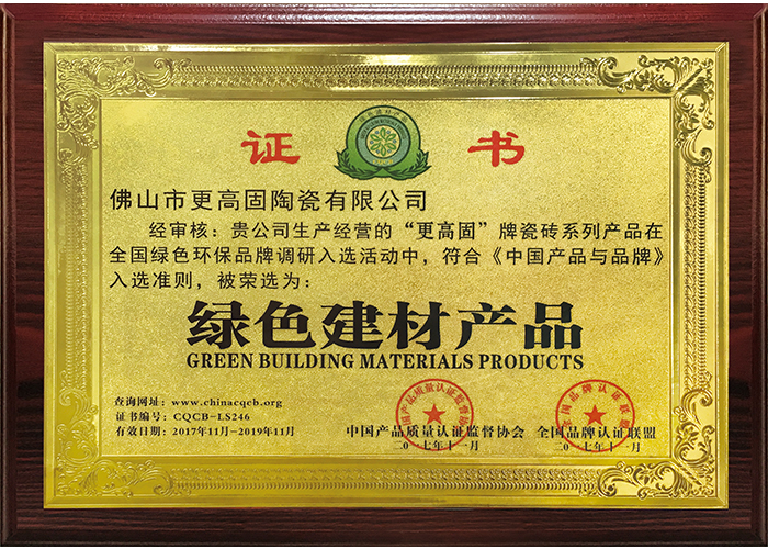 中國(guó)陶瓷行業(yè)創(chuàng)新領(lǐng)先品牌金色證書(shū)