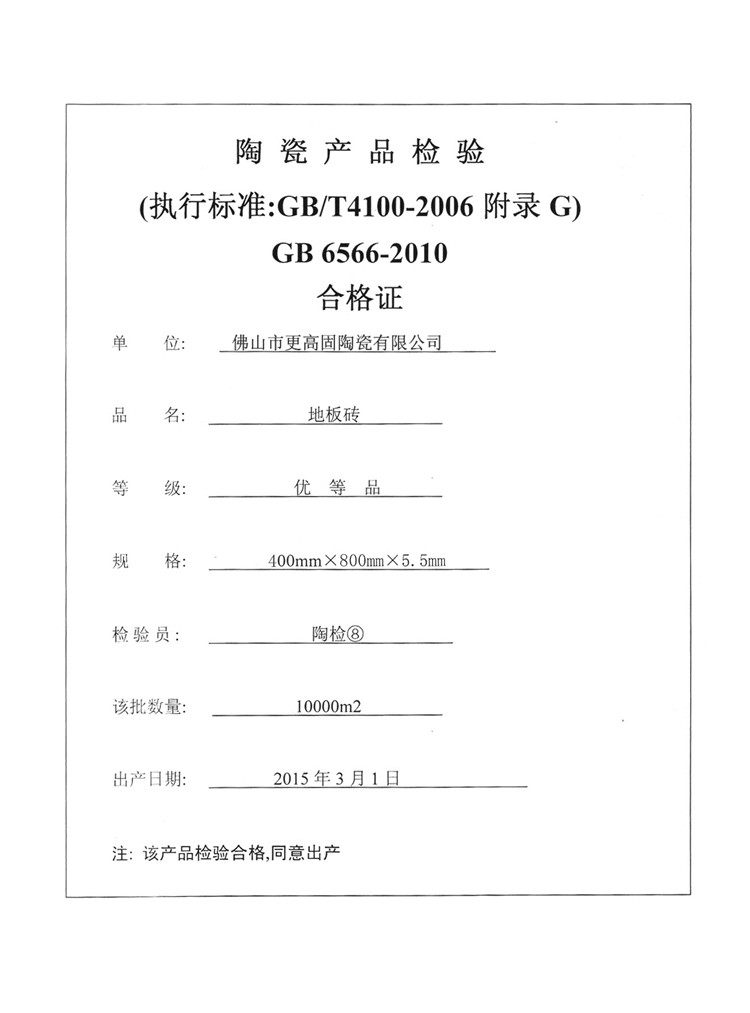 檢驗(yàn)報(bào)告—陶瓷薄板400*800