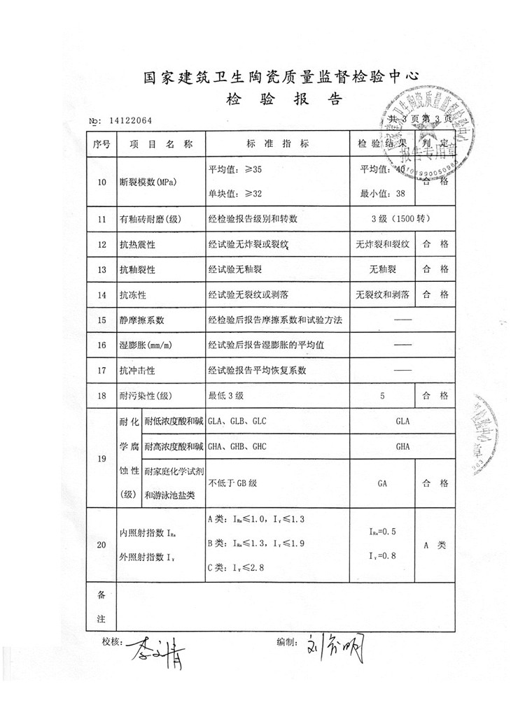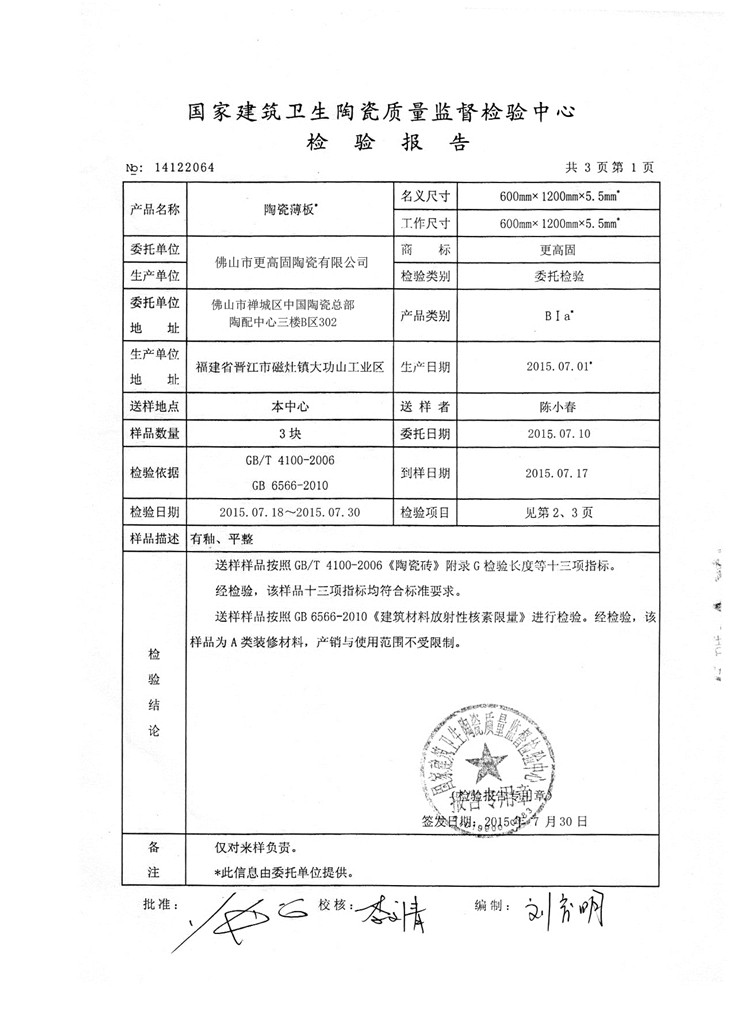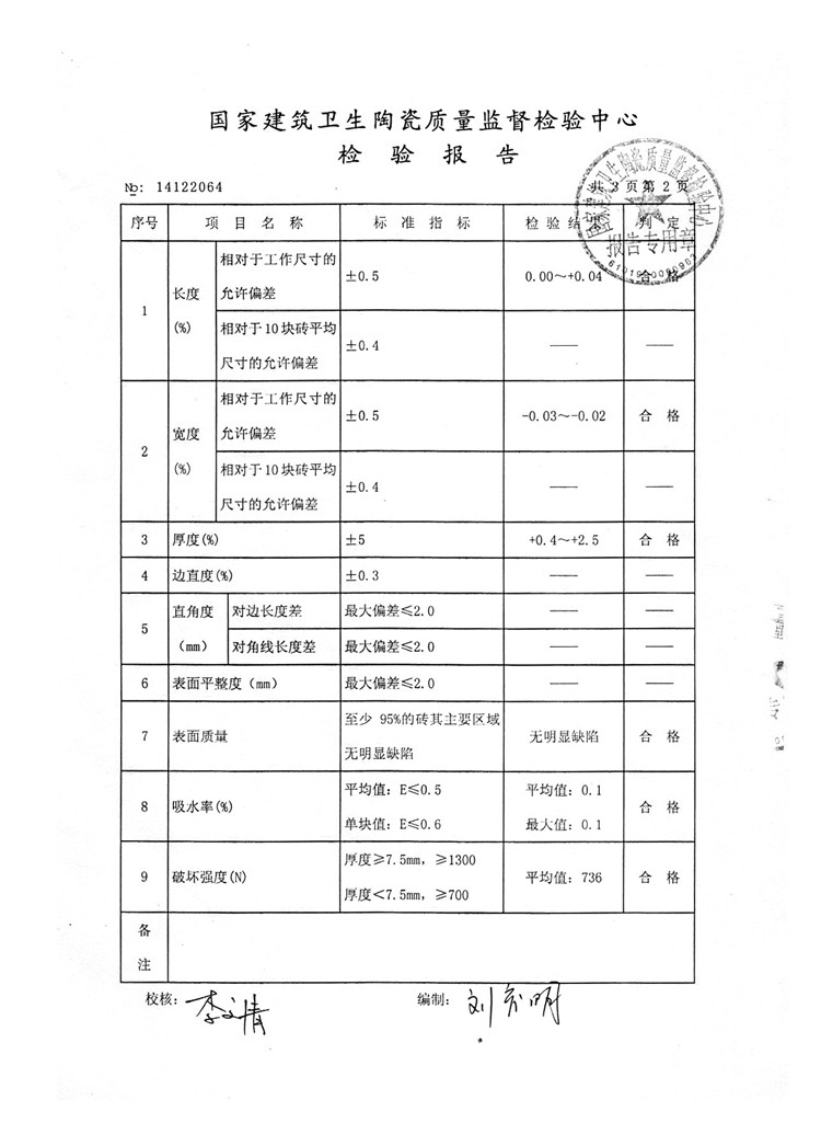 檢驗(yàn)報(bào)告—陶瓷薄板600*900